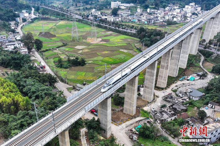贵州盘州至兴义高铁(以下简称,盘兴高铁)于28日开通运营,每日开行7对动车组列车,兴义南站至盘州站、贵阳北站最快分别33分、1小时56分可达,将有力推动沿线旅游资源开发,促进区域经济社会高质量发展。盘兴高铁的开通让贵州成为中国西南地区首个实现市(州)中心城市高铁全覆盖的省份。