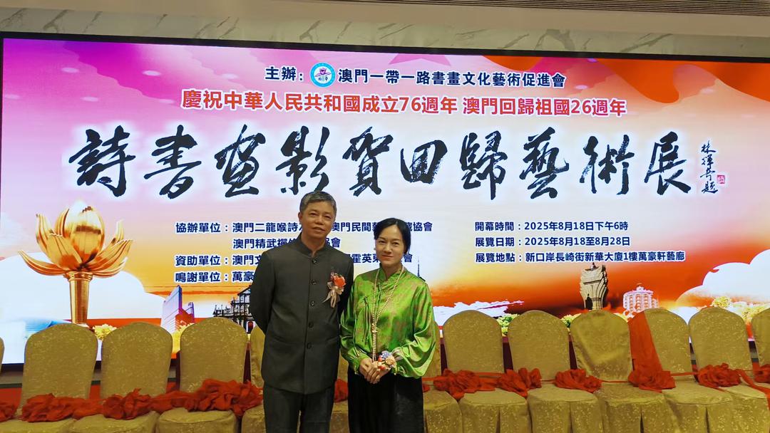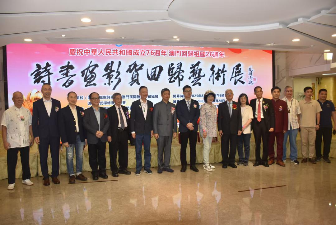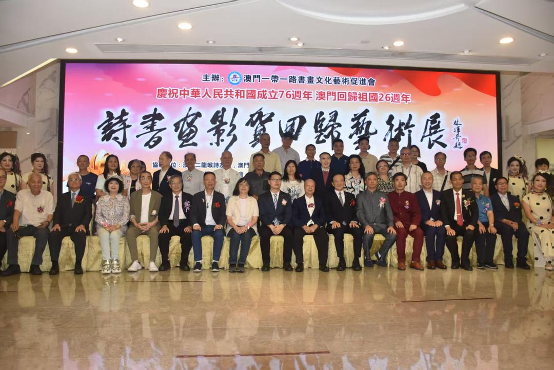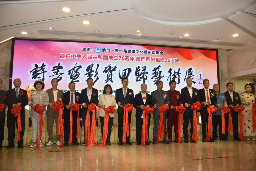 (灣新社/大灣區時報澳門訊,記者李翔、陳念祖報道)由澳門“一帶一路”書畫文化藝術促進會主辦的“詩書畫影賀回歸藝術展”從今日起至本月28日假萬豪軒1樓萬豪藝廊舉行,展出近百幅題材多樣、風格各異的詩書畫及攝影作品。主辦單位表示,展覽以多元的藝術語言,訴説對澳門回歸祖國的祝福,以及對中華文化根脉的堅守與傳承,創新和發展,以藝為謀,共聚家國情懷,共繪時代新篇,讓愛國愛澳的光榮傳統薪火相傳。