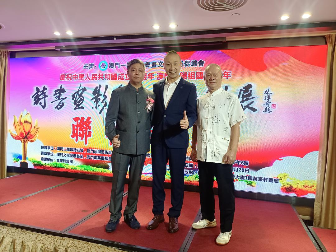 主持揭幕儀式嘉賓還包括:澳門日報常務副總編輯蔡彩蓮,澳門書畫藝術聯誼會會長李秋平博士,香港中國書法家協會理事兼副秘書長秦領,澳門二龍喉詩友會會長任風塵,澳門路環石排灣坊會長兼澳門第一代華人機長林家全,珠海愛暉護老院創辦人及愛心大使徐輝院長,澳門民間藝術珍藏協會會長李明仔,澳門精武禪修養生協會會長黃明喜,澳門竹木雕書畫協會會長陳忠華,澳門聲弦音樂藝術協會王漢娜,澳門美術家協會主席黎鷹等各界友好。