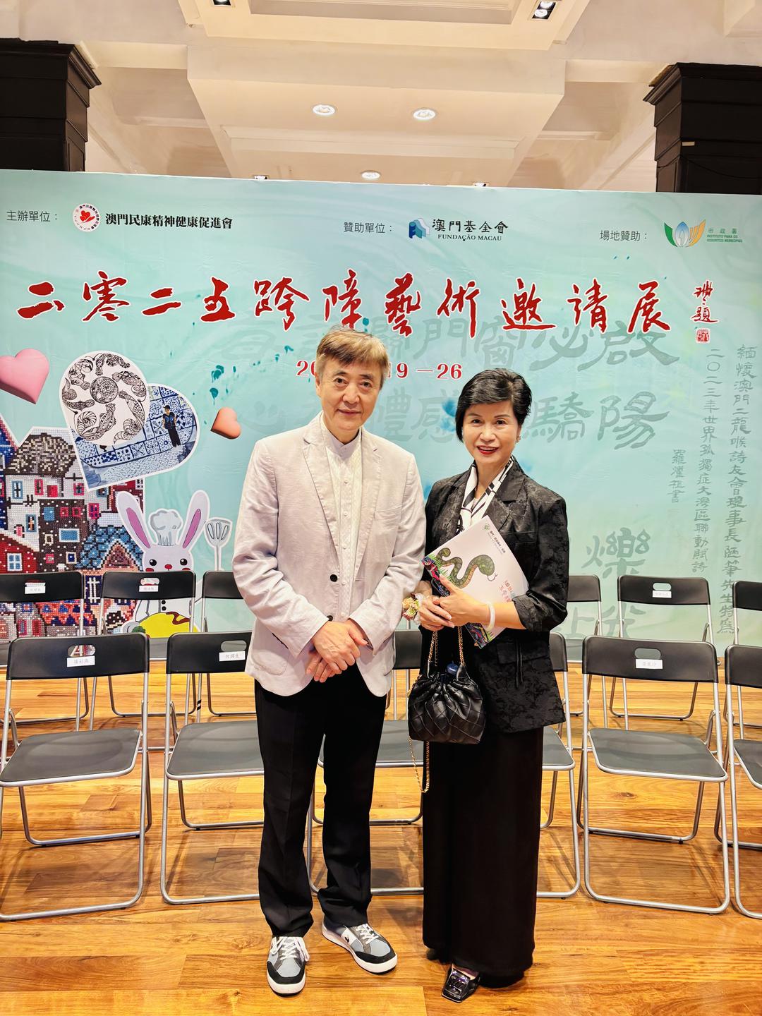 開幕式昨日下午六時半假盧廉若公園春草堂舉行,澳區全國人大代表劉藝良、全國政協常委何潤生、中聯辦社工部代表楊慧延、議員羅彩燕、澳門基金會活動處長黃麗沙、社工局機構個案支援組職務主管劉傑文、教青局心理輔導及特殊教育中心主任周佩玲、衞生局精神科曾美有醫生、街總、工聯、民建聯、社會民生促進會等社服機構代表,以及各友好復康團體及文代藝術團體表等出席。