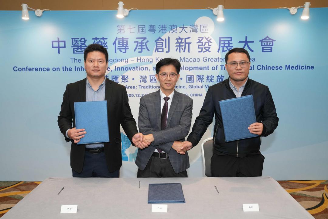 同日,另一項聚焦中醫藥現代化與智慧化的合作項目也正式啓動。石崇榮博士代表澳門中醫藥學會,與暨南大學附屬第一醫院朱詩平教授、華工岐黃(佛山)智能科技有限公司賴華主任,共同簽署了“粵港澳大灣區體重管理中醫體質膳食AI診療系統項目”合作協議。該項目將融合澳門的中醫藥應用經驗、內地頂尖醫院的臨床科研實力以及高科技企業的智能技術,共同研發一套基於中醫體質辨識的人工智能體重管理及膳食診療系統。此舉是推動中醫藥服務數字化、標準化、個性化發展的重要嘗試,有望為大灣區居民提供更科學、精准的健康管理方案。