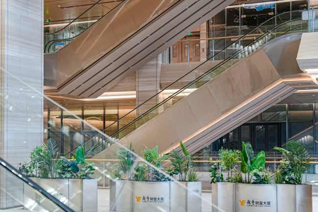 越秀财富大厦以方城新古典风格为基调,融合“花园办公”理念,打造垂直绿化系统、开阔露台与共享户外花园,营造健康、自然、开放的办公环境。