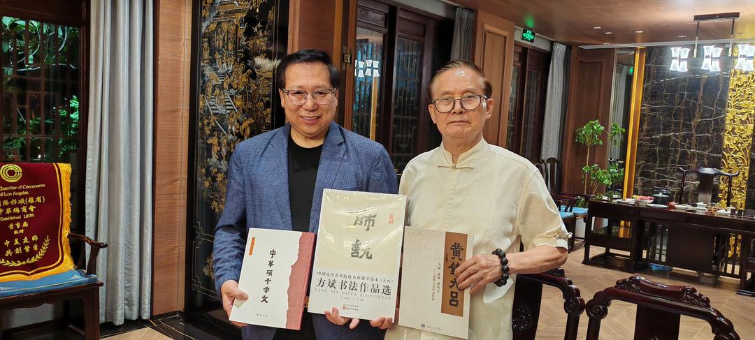 广东省侨联常委,加拿大粵商总会名誉会长倪壁雄代表商会将书法作品赠送洛杉机中华总商会。