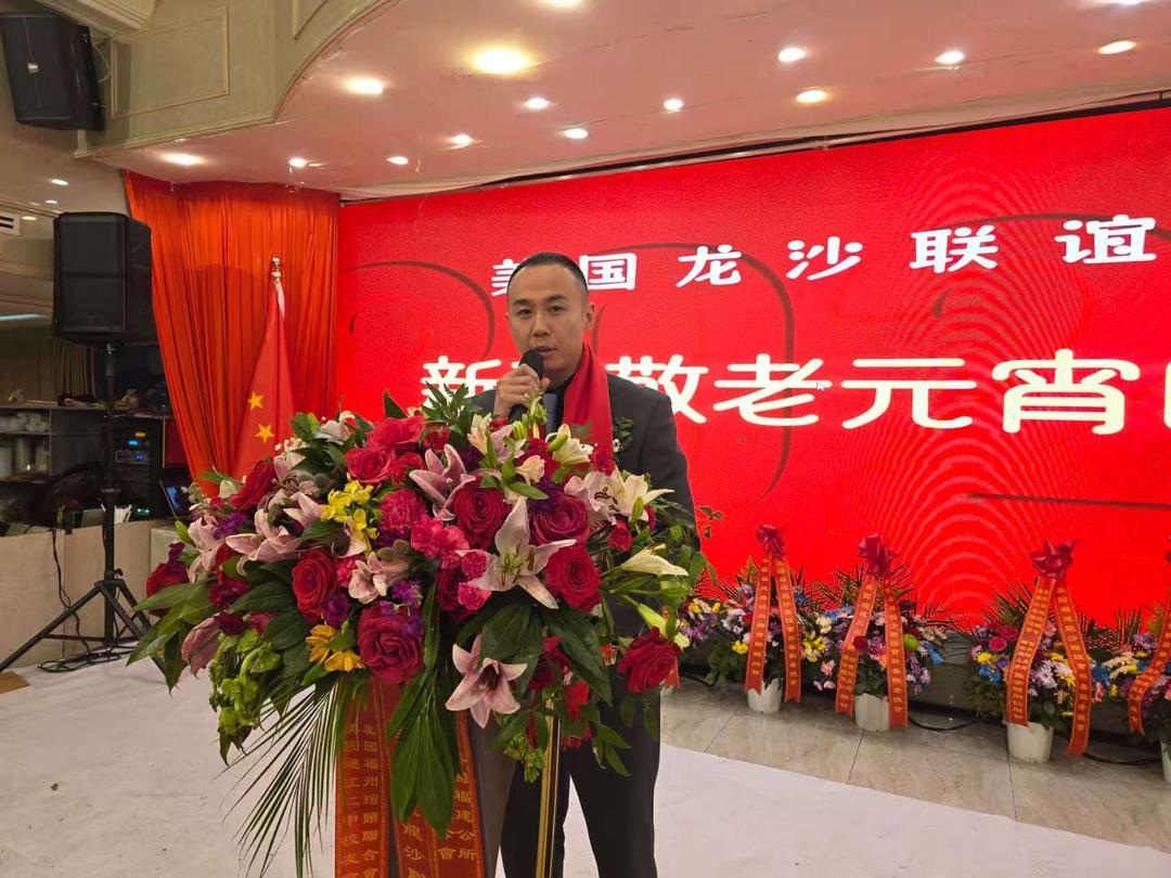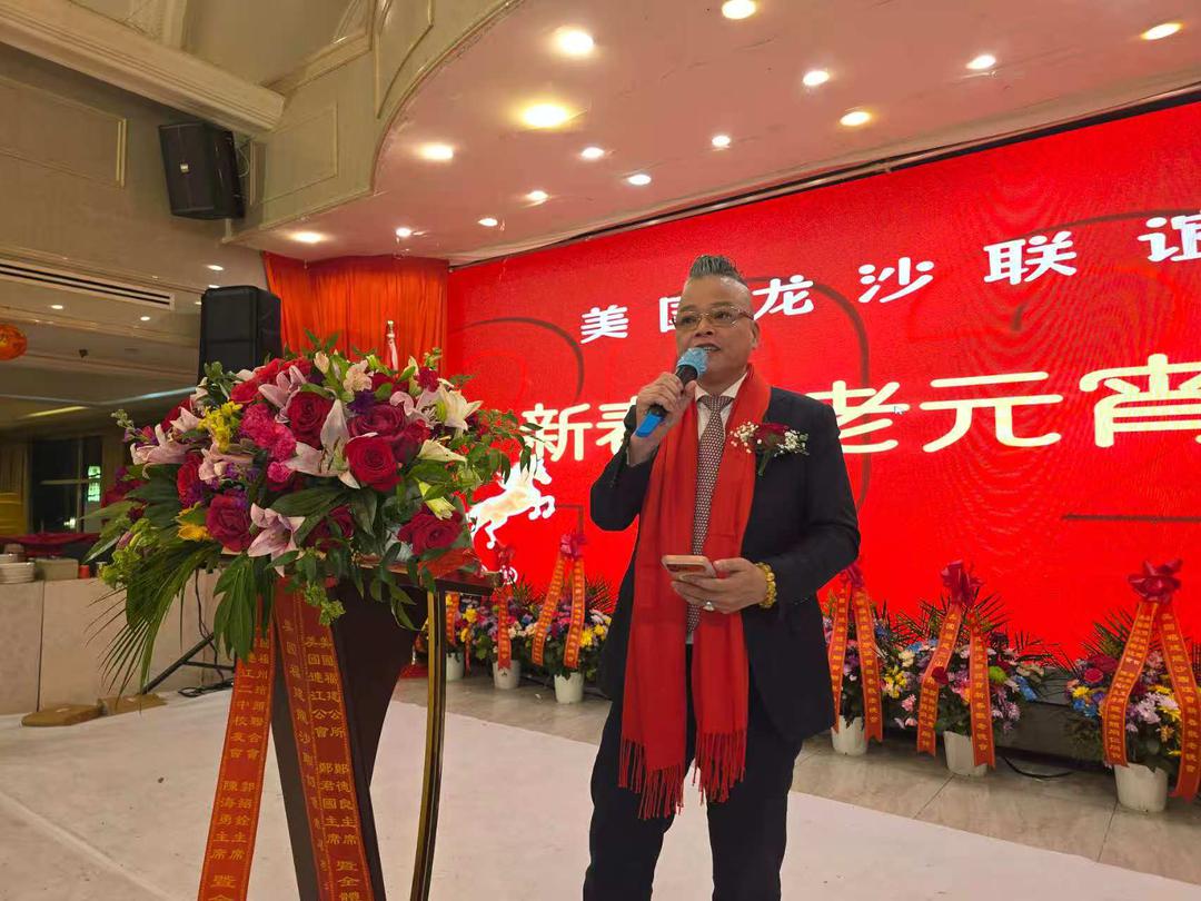 美国龙沙联谊会主席黄势平致词:大家晚上好!新春的喜气还在身边,元宵佳节马上就到来。在这个团圆美好的时刻,我们龙沙联谊会再次相聚,共同举办这场“春晚敬老元宵晚会”。首先,我代表联谊会,给各位拜个晚年!祝大家新春快乐、身体健康、阖家幸福、马年大吉!