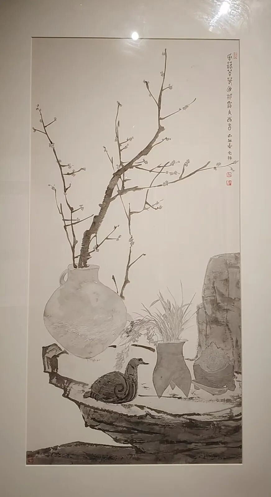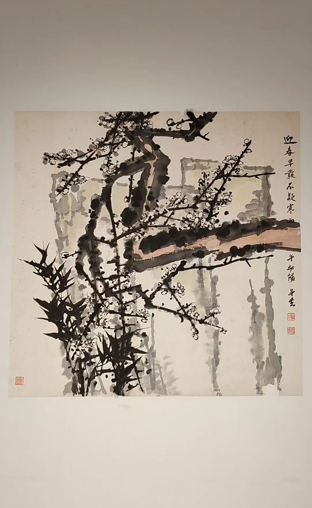 观其新作,或写老梅虬枝,铁干横空,清气满纸;或出新意于法度,寄妙理于物象,生机勃发,气韵清和。笔墨之间,既见传统文人之高致,亦含时代精神之气象,更寄寓对枫桥人文底蕴与革命精神之深情礼赞,可谓承先贤之韵,开当代之境。