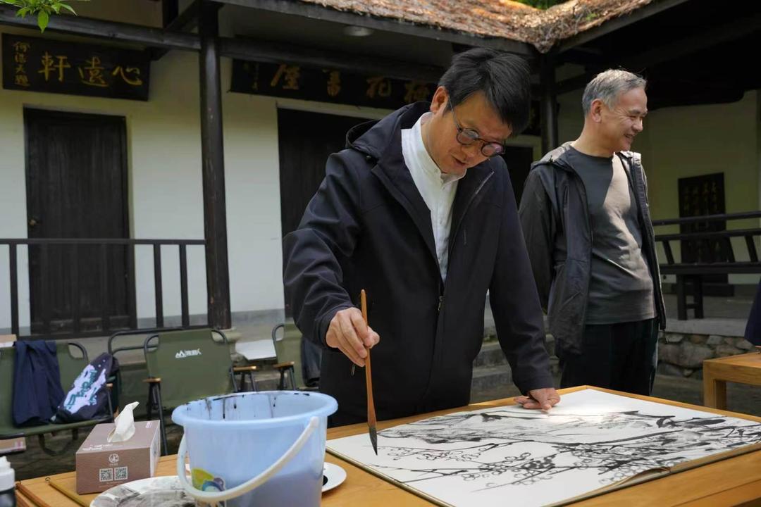 据展览发起人诸暨籍著名画家王伟平介绍,此次活动缘起有着深厚的文化情怀。“我们很重要的一个初衷就是为了纪念诸暨籍的元代大画家王冕。”王伟平说。王冕在中国画梅史上地位举足轻重,其“不要人夸好颜色,只留清气满乾坤”的诗句影响了一代又一代读书人。选择在枫桥三贤馆办展,正是因为这里是王冕、陈洪绶、杨维桢三位艺术大家的故里,在全国花鸟画家心中具有特殊的精神地位。“我们来这里,既是‘拜圣朝圣’,探寻古人画梅的艺术气息,也是想亲身感悟:为什么诸暨这块土地能够孕育出这么多杰出的艺术家?”王伟平表示,走进枫桥就像一次溯源之旅,对当代画家而言意义深远。