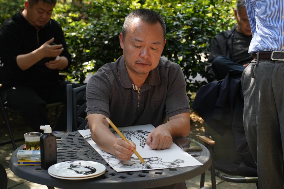 展览特邀当代写意花鸟画坛十位名家:岳黔山、王伟平、乔宜男、麻元彬、屈健、许敦平、阴澍雨、周午生、刘海勇、蔡栋。诸公皆当代画坛中坚,久负令望,或执教高等美术学府,或潜心研究院所创作,于花鸟画理法与意境创构皆有独造。此次躬履枫桥,访三贤之旧迹,循红色之遗踪,对景写生,感怀寄兴,以笔墨写心,以造化入画。