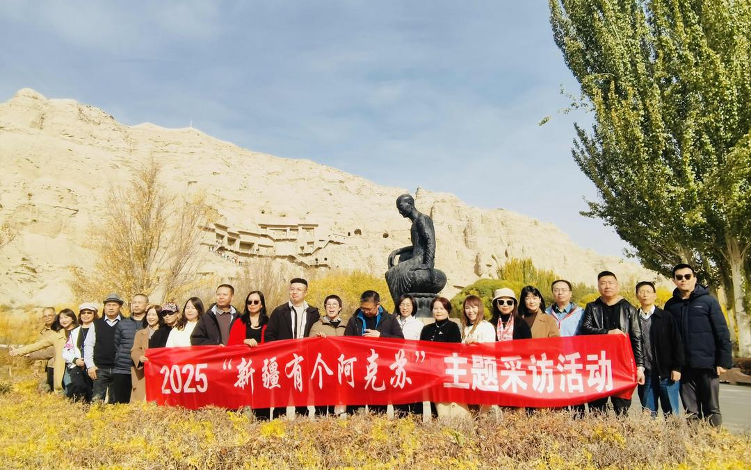 24家海外华文媒体代表10月27日走进拜城县克孜尔石窟,在这片见证了千年丝路文明辉煌的崖壁上,开启了一场穿越时空的文化对话。