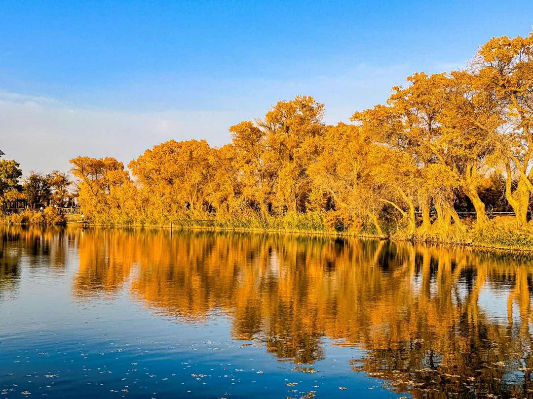 这抹动人的秋色,正吸引着众多游人走进库车,在欣赏自然之美的同时,感受其沉淀千年的文化厚重。“位于我镇的375.2万亩原生态胡杨林,是我们发展乡村旅游的宝贵财富。游客在这里赏胡杨美景,游巴依孜湖,品草湖小山羊,让我们百姓的生活过得红红火火。”10月28日,库车市塔里木镇副镇长买尔比亚·依米提介绍道。