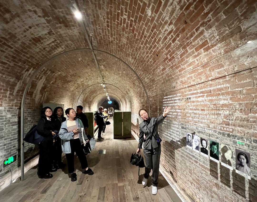 在讲解员的带领下,采访团记者们在青砖老墙与红色标语间驻足停留,依次参观了现存国内最完整的抗战时期窑洞工厂群落、薄壳车间、申新纱厂办公楼等历史建筑。斑驳的机器、深邃的窑洞、珍贵的史料照片,无声地诉说着那段筚路蓝缕、实业救国的峥嵘岁月,永远是中华民族不屈精神的象征。