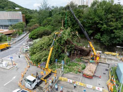 台风折断香港半世纪古樟 央企义工风雨中清障