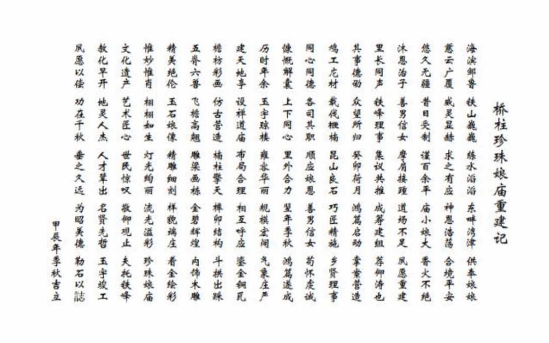 2024 年 12 月 10 日(农历十一月初十)举行"珠光盈桥,文脉铸柱"大型活动,是珍珠娘庙重建落成暨珍珠娘娘开光盛典。 本次活动由桥柱铁峰公益事业促进会主办历时半年筹备,吸引全球关注。 主殿供奉阿富汗天然蜜桃玉石雕刻的珍珠娘娘圣像 (高 2 . 5 2 米, 重约 2.6吨)。