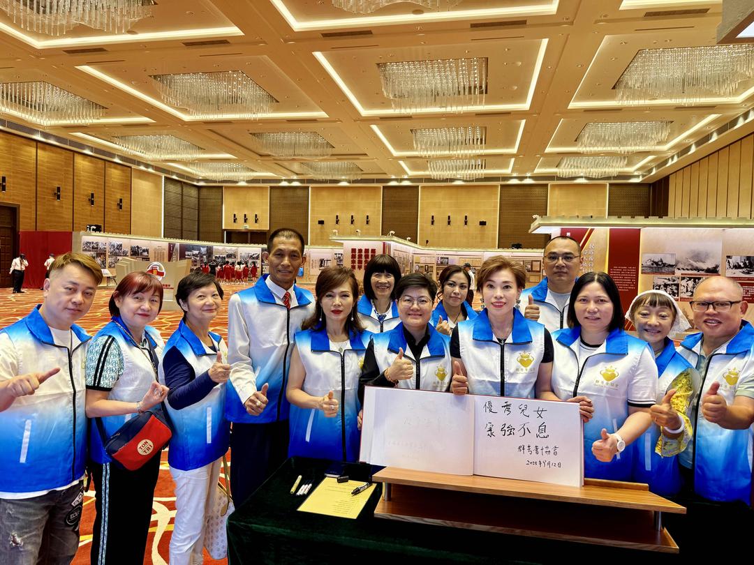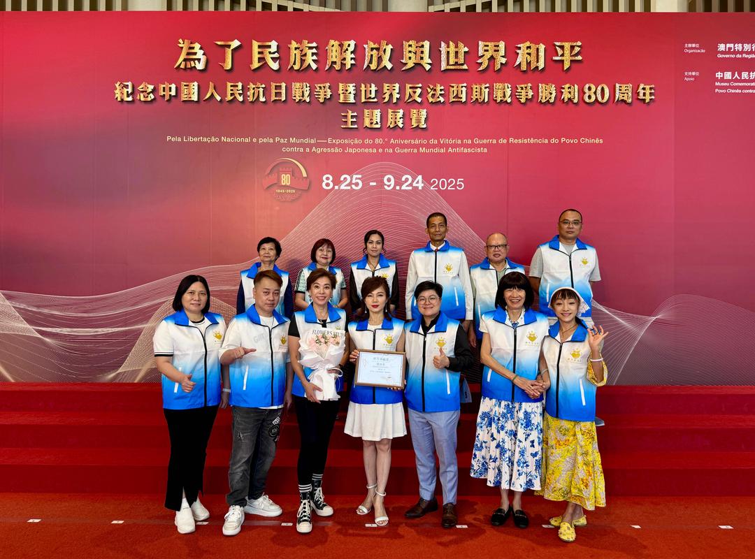 (大灣區時報澳門訊,記者李翔報道)2025年9月12日中午13時30分,澳門群芳薈協會的梁雅麗會長、董素春理事長、永遠榮譽會長楊彩連、榮譽會長李浚杰、李明仔、李翔、曹志賢及其他13位會員共同參觀了《紀念中國抗日戰爭暨世界反法西斯戰爭勝利80週年》展覽。