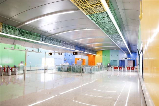 大康站以“活力之城”为主题,从园山产业和方形建筑中汲取灵感,将装配式构件与围屋文化结合,呈现色彩丰富、动感十足的空间氛围,展现深圳新兴活力。