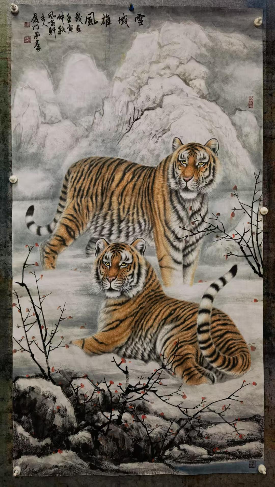 卢承豪作品名称虎《雪域双雄》,规格:180X97Gm,材质:生宣。
