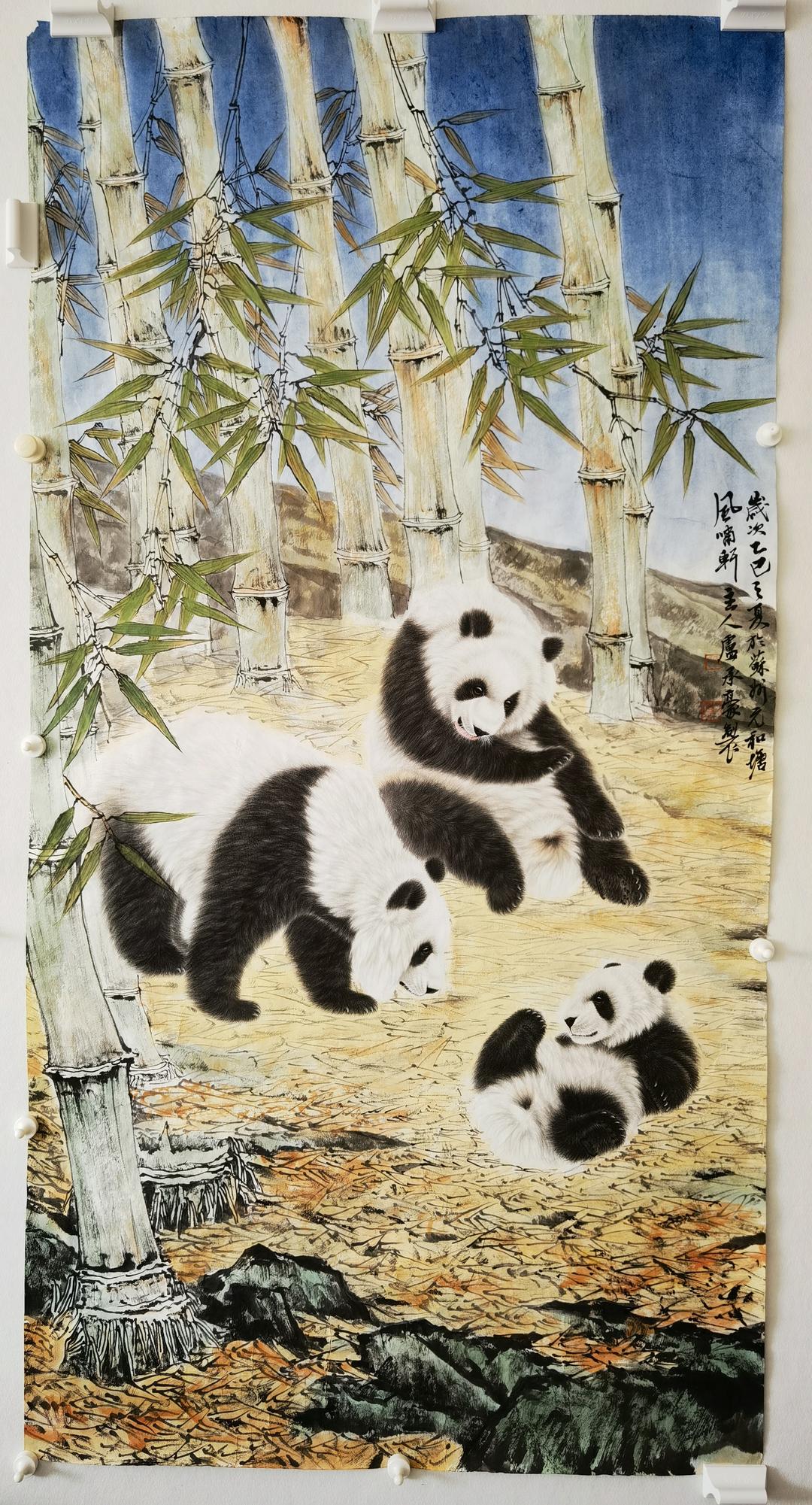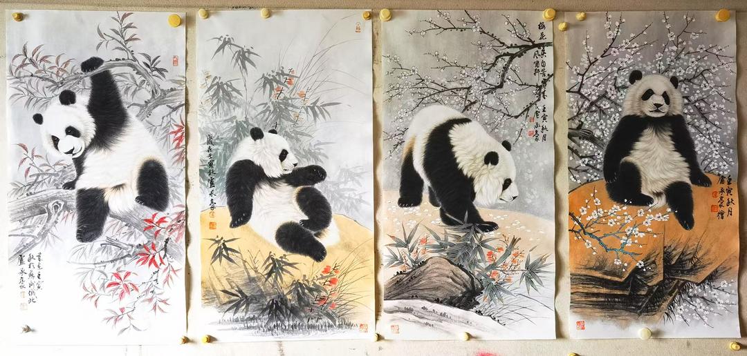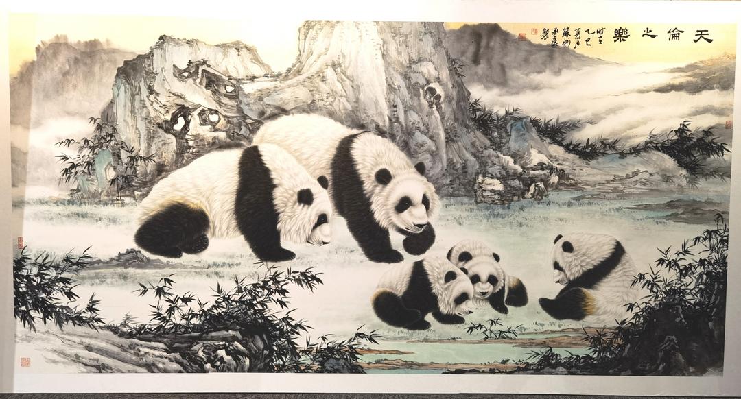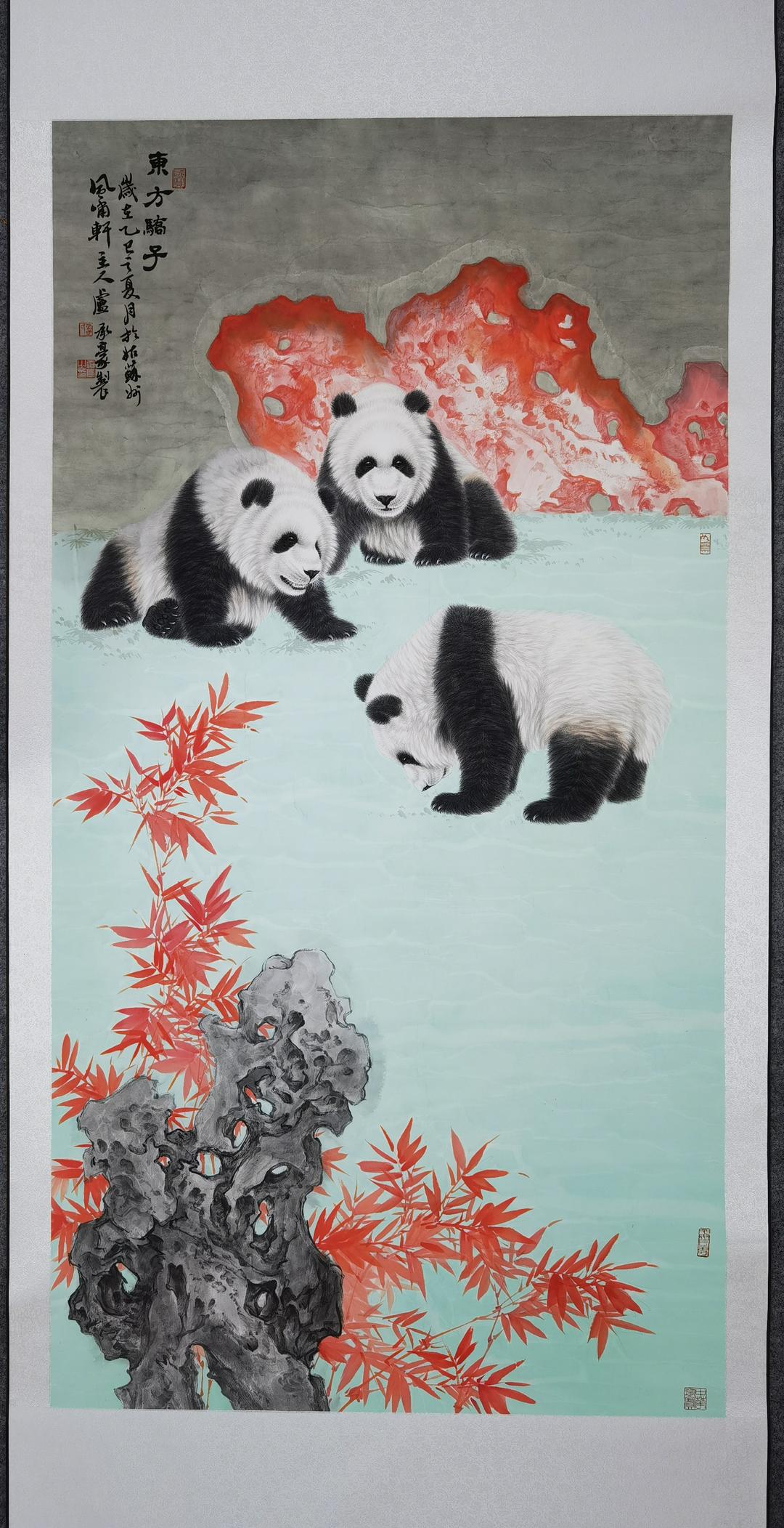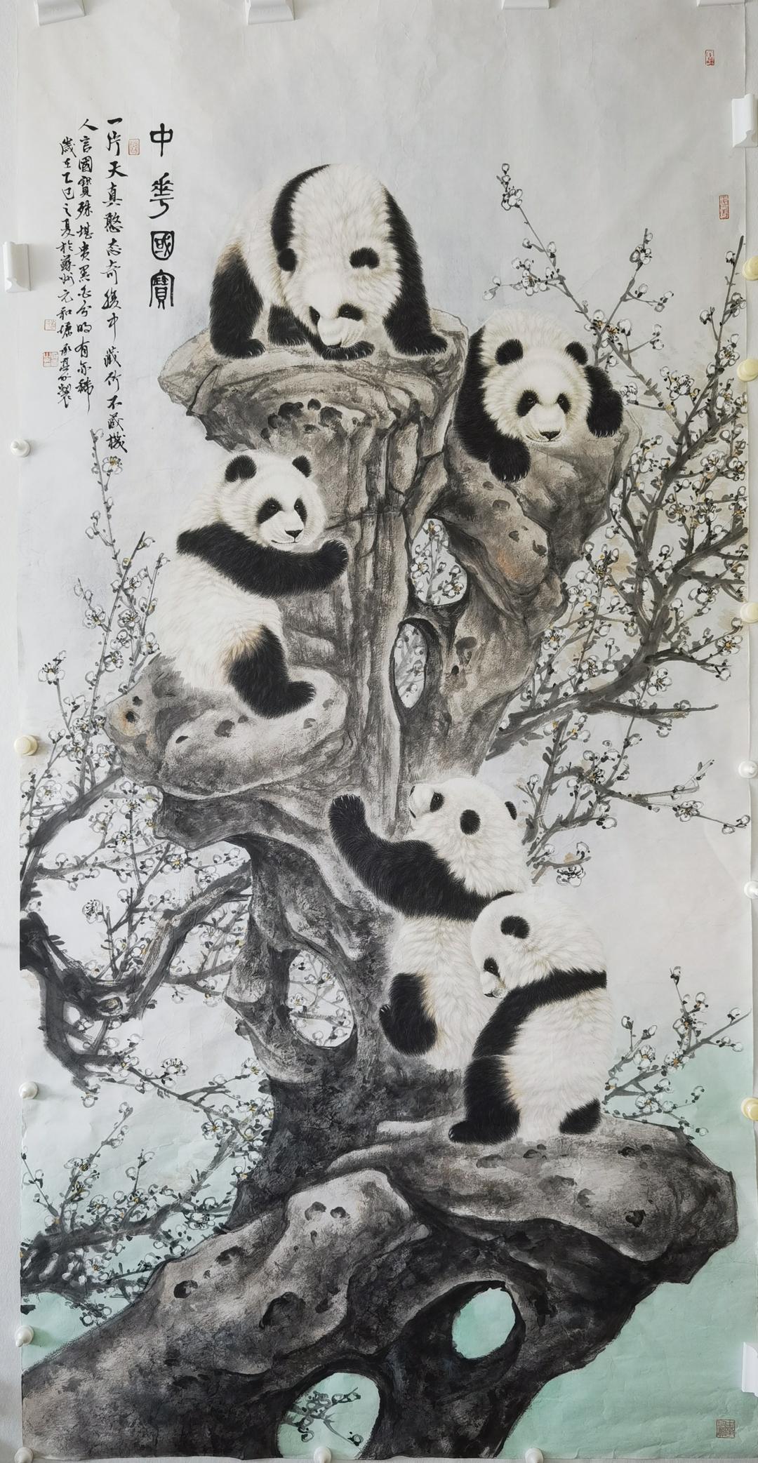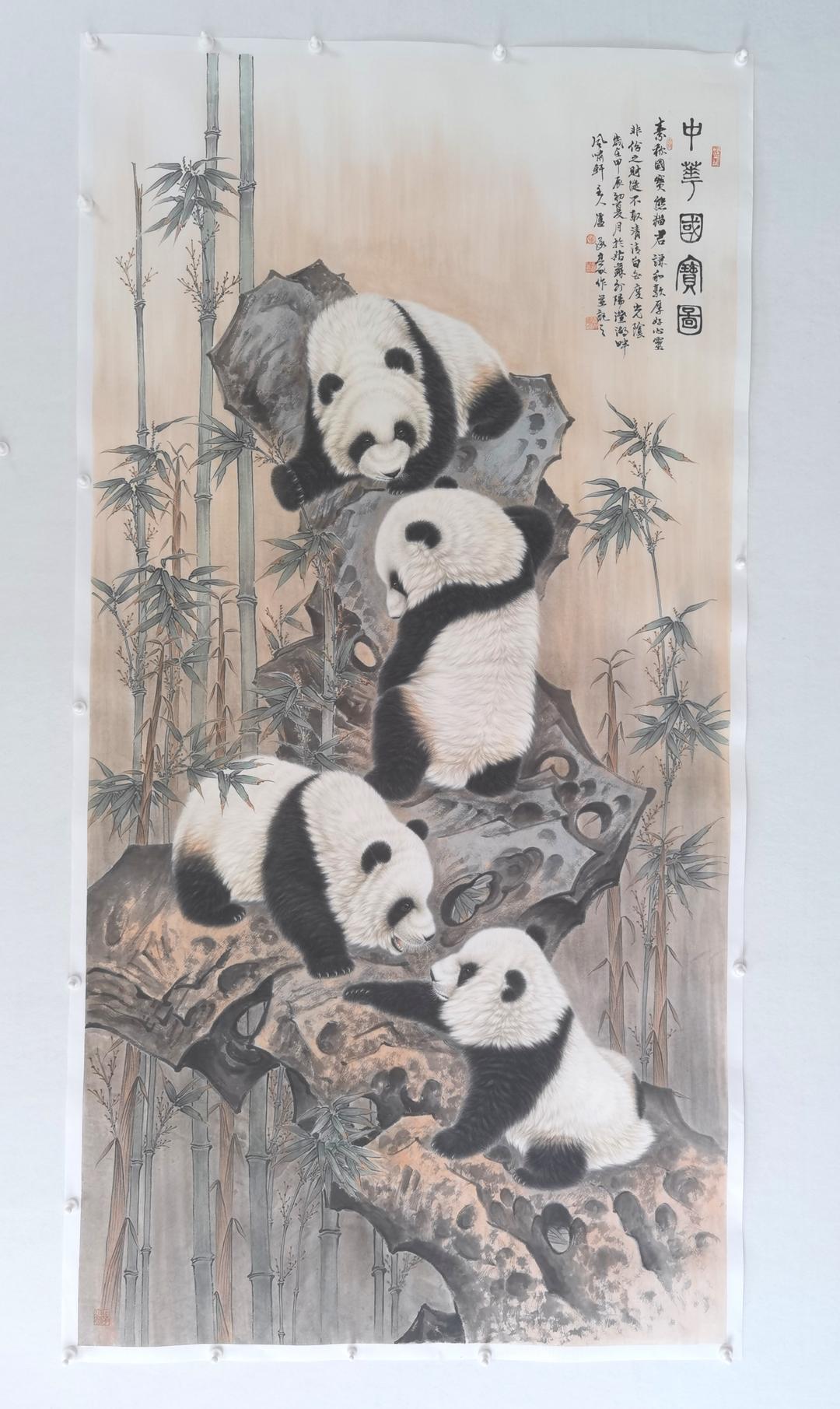 卢承豪作品熊猫名称《中华珍宝》,规格:126X248cm,材质:生宣。