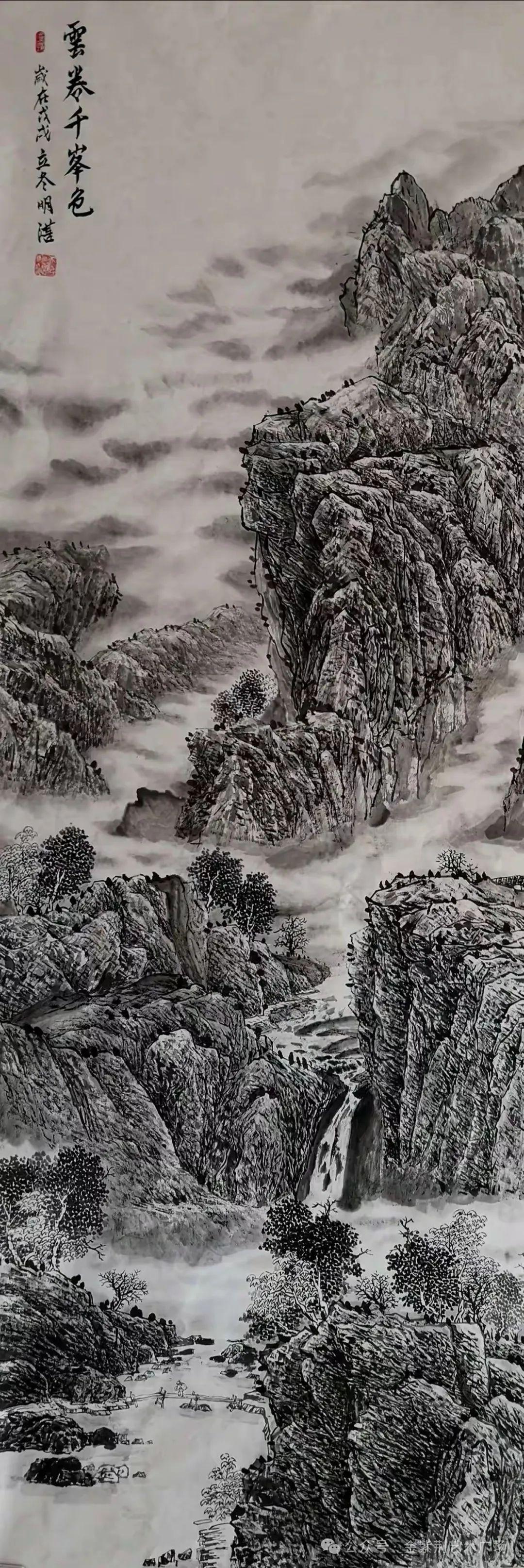 明湛的山水画像一脉清泉,让我们重新发现毛笔与宣纸承载的东方美学智慧。他笔下的云山雾霭,既是对宋代美学的深情回望,更是以当代心灵对传统的重新阐释。当观者驻足画前,不仅能触摸到郭熙《林泉高致》中"可行可望可游可居"的山水理想,更能感受到一个现代画家在古老传统中生长出的独特艺术生命。