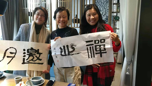 合照于“苏家美术馆二十周年庆典”,前排左起:林蓝、苏家芬、余秀云、苏小华、苏家杰、章骏之,后排左起:李山珊、韦潞。
