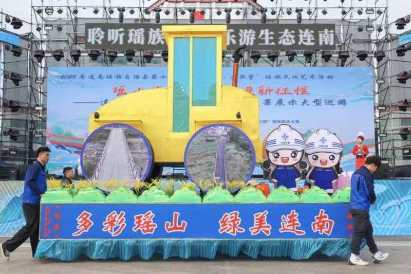 在完善交通网络的同时,项目积极融入地方文化。此次受邀参加瑶族盘王节花车巡游,以现代设计传递祝福,与瑶乡同胞共庆佳节,体现了对民族文化的尊重与支持,展现了企地同心、携手发展的深厚情谊。
