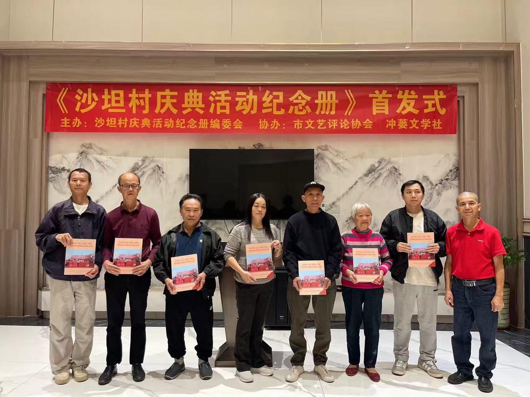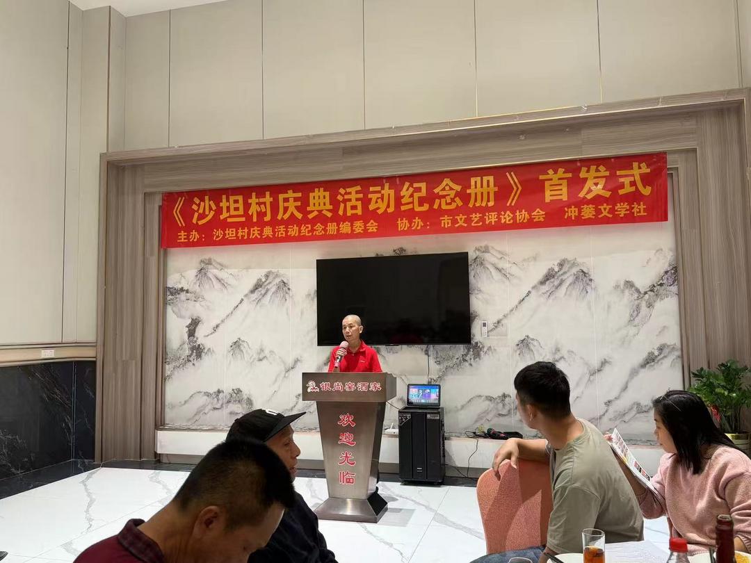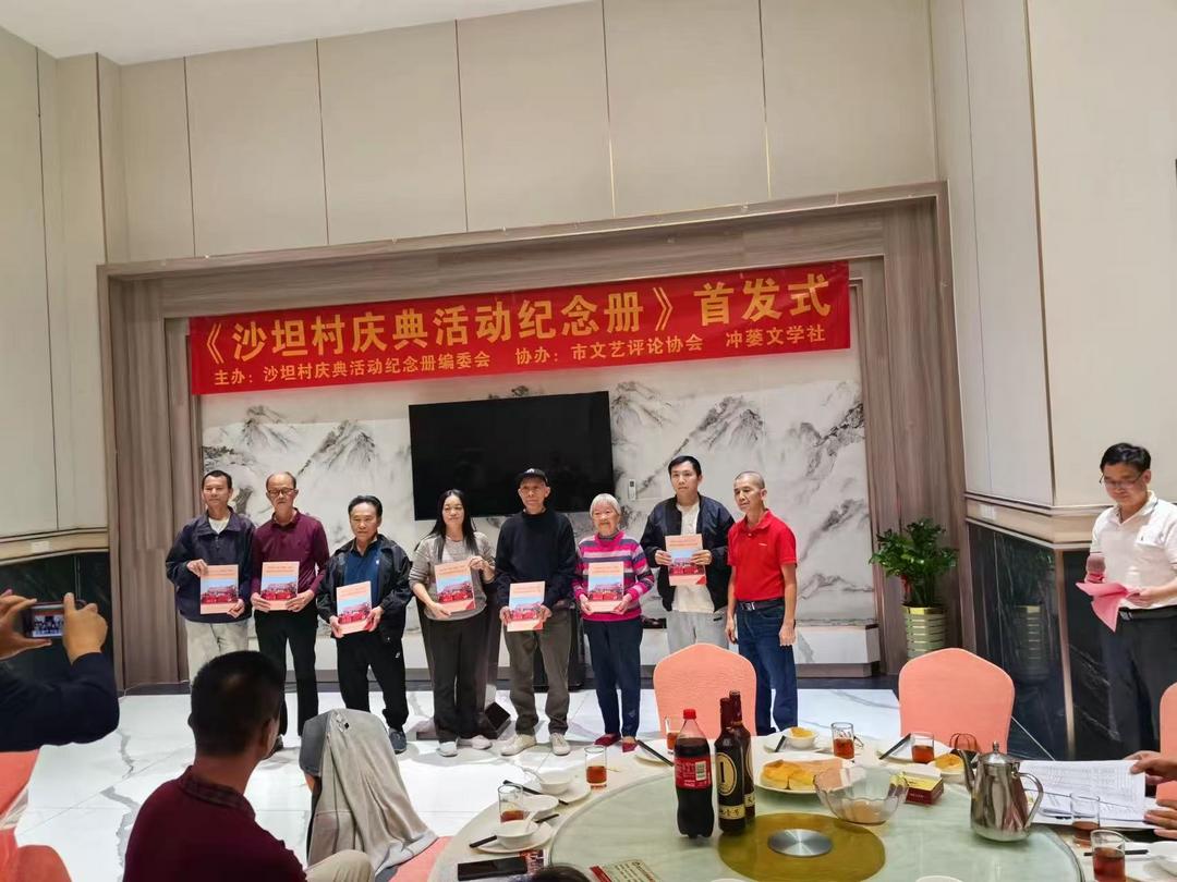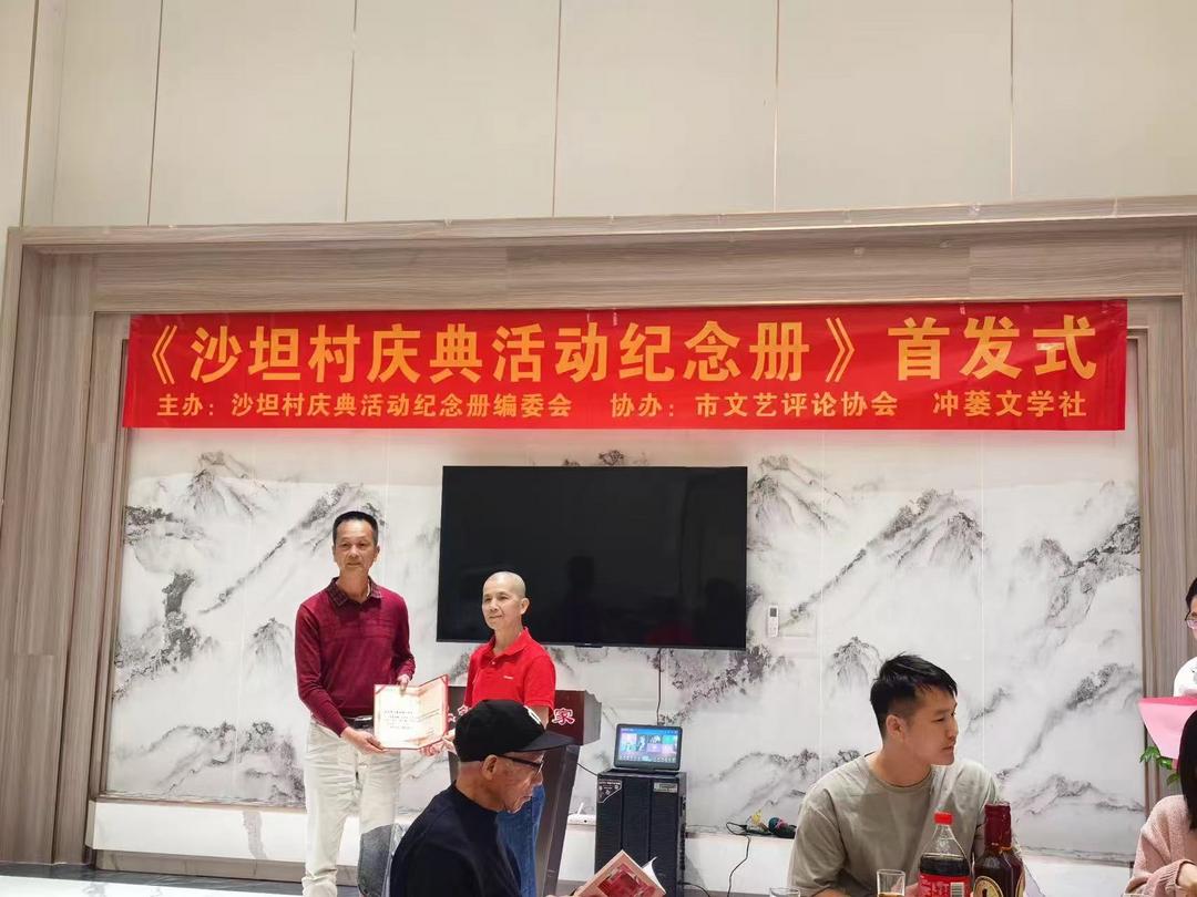 1月18日,台山市冲蒌竹湖沙坦村庆典活动纪念册编委会联合台山市文艺评论协会和冲蒌文学社,假坐冲蒌银尚宴酒楼隆重举行《沙坦村六项工程剪彩暨出嫁女回娘家活动纪念册》首发式。出席活动有台山市图书馆、台山市文艺评论协会、台山市炎黄文化研究会、台山市立信会计教育、冲蒌镇政府、冲蒌侨联、冲蒌侨刊社、冲蒌文学社、冲蒌竹湖村委会等部门单位负责人,以及活动纪念册编委会和编辑部全体成员、村庆典活动筹委会成员、出嫁女回娘家工作人员、作者、文友等共50多人。