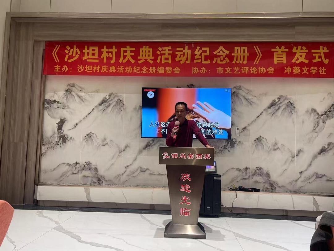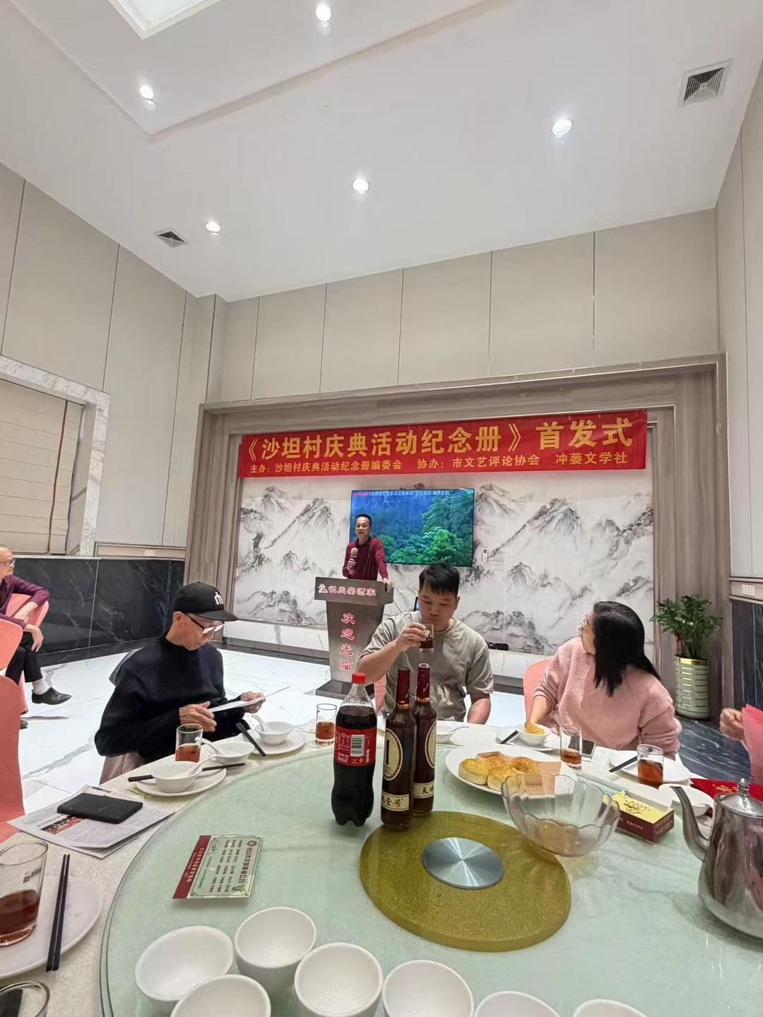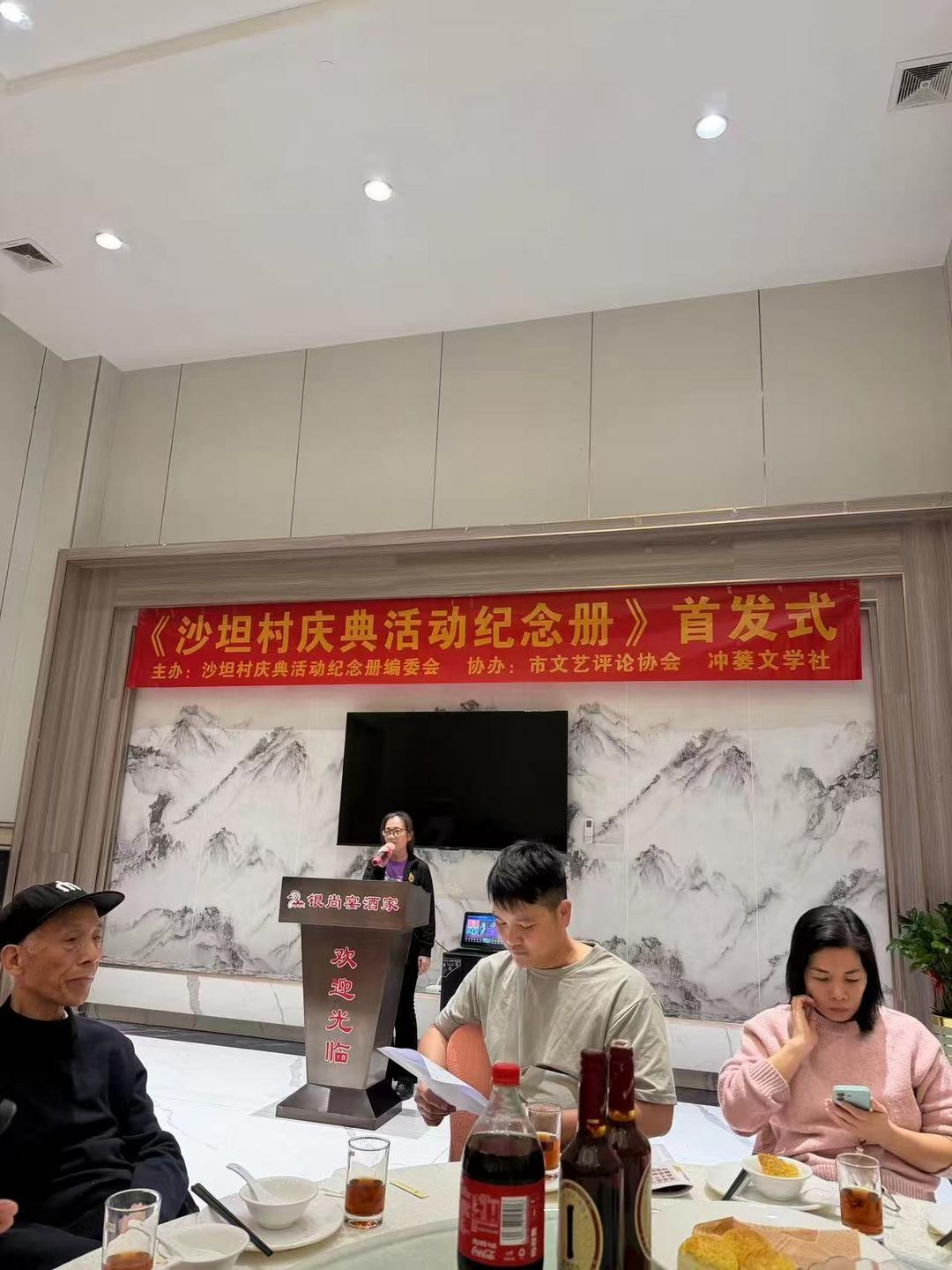 1月18日,台山市冲蒌竹湖沙坦村庆典活动纪念册编委会联合台山市文艺评论协会和冲蒌文学社,假坐冲蒌银尚宴酒楼隆重举行《沙坦村六项工程剪彩暨出嫁女回娘家活动纪念册》首发式。出席活动有台山市图书馆、台山市文艺评论协会、台山市炎黄文化研究会、台山市立信会计教育、冲蒌镇政府、冲蒌侨联、冲蒌侨刊社、冲蒌文学社、冲蒌竹湖村委会等部门单位负责人,以及活动纪念册编委会和编辑部全体成员、村庆典活动筹委会成员、出嫁女回娘家工作人员、作者、文友等共50多人。