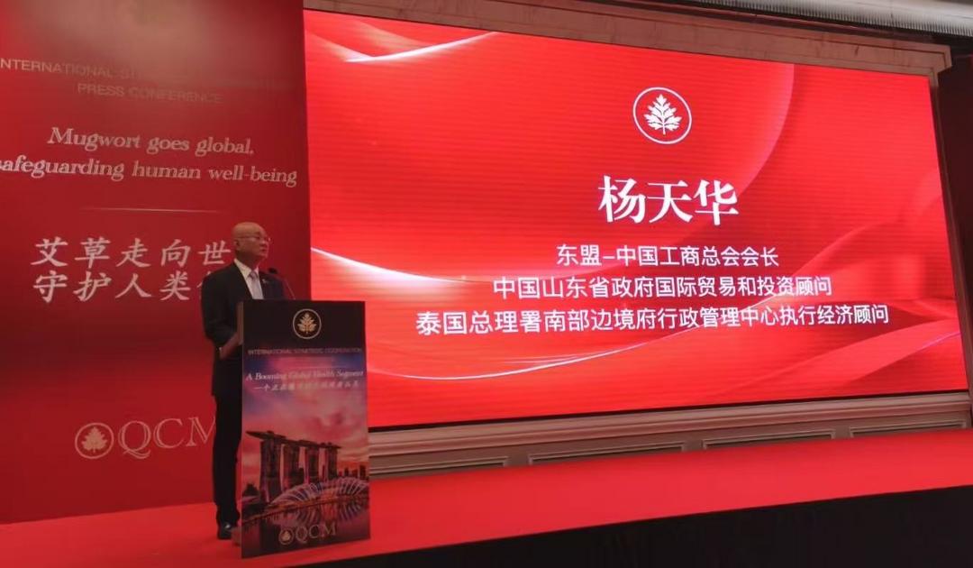 在致辞中,杨天华会长首先对湖北蕲艾集团与新加坡 SDAI 集团成功达成国际战略合作表示热烈祝贺。他指出,此次合作是在当前东盟与中国经贸往来持续深化、产业协同不断升级的大背景下达成的重要成果,是中国优质健康产业资源与东盟国际资本、市场体系和专业化管理能力的一次深度对接,具有鲜明的时代意义和示范价值。