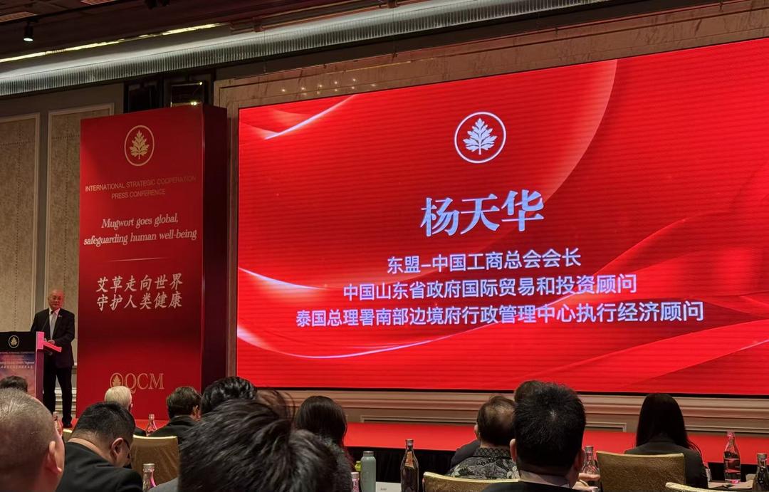 2026年1月18日,湖北蕲艾集团与新加坡 SDAI 集团(新加坡上市公司)国际战略合作发布会在新加坡乌节酒店(Orchard Hotel Singapore)隆重举行。来自中新两国及东盟地区的政商界代表、行业机构负责人和企业嘉宾齐聚一堂,共同见证双方在健康产业领域开启国际化合作的新篇章。东盟—中国工商总会会长杨天华应邀出席发布会,并在活动中发表祝贺致辞。