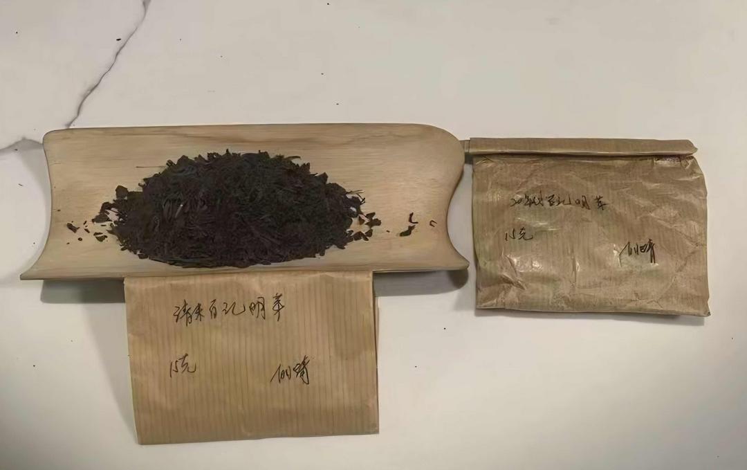 癸卯年的某个秋日下午,天高云淡,桂香漫溢。我约了几位茶友,携一泡白水清先生收藏的上世纪20年代极品老六安篮茶“伯记明芽”,前往茶友鲁先生的茶室,盼与众人共赏这份时光馈赠与茶中珍品。鲁先生见我携来他师傅的珍藏,连忙摆手笑道:“这可是六安茶中的号级茶,比普洱号级宋聘号还要珍稀,你当好好珍藏,切莫轻泡。我这里恰好也藏有几泡,今日便喝我的吧,你这泡就好好收藏了,这可是一泡难求。”说罢,他从博古架上取下一个同款素纸茶袋,袋上有其师傅亲笔签名,清晰标注“清末佰记明芽 15克”,又道:“此茶气韵醇厚,媲美清末宋聘号,今日也算与诸位共饮一款稀世号级茶了。”