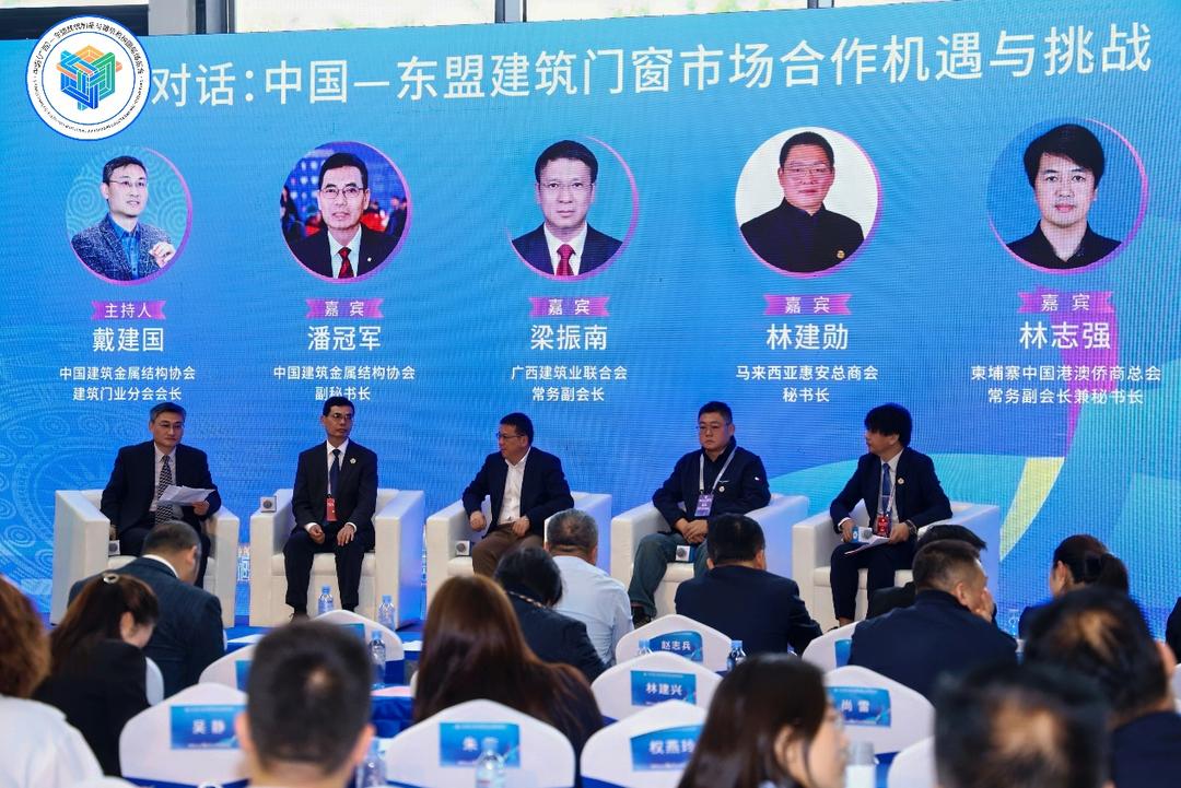 圆桌对话环节在中国建筑金属结构协会建筑门业分会会长戴建国的主持下将上午会议推向高潮。中国建筑金属结构协会副秘书长潘冠军、广西建筑业联合会常务副会长梁振南、马来西亚惠安总商会秘书长林建勋、柬埔寨中国港澳侨商总会常务副会长兼秘书长林志强四位嘉宾,围绕中国—东盟建筑门窗市场的发展现状与挑战展开深度对话,为与会企业提供了宝贵的市场洞察。几位嘉宾全面介绍了东盟建筑门窗市场的需求特点和中企的机遇,展望了未来双方合作的潜力和发展趋势,并对东盟市场面临的挑战和风险给出了建议。嘉宾特别提到:中企出口东盟要特别关注本地化与长期化,深入了解当地文化习俗与产业政策,适应与国际各地区品牌竞争的局面。潘冠军副秘书长还特别强调,中国企业面向东盟出海,要保持战略定力,坚定信心、加强协作,争取在东盟市场站稳脚跟,逐步打开市场。