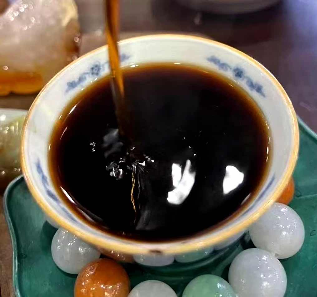 若延长浸泡时间,茶汤的浓醇度会明显提升,蜜香与药香愈发突出,木质香则悄然退为底色,入口时甜润感更足,回甘也拉得更长;茶汤中还会多一丝淡淡的果酸,不浓烈却恰到好处,这是陈年老茶的典型特征,是茶叶内部物质历经近百年缓慢转化的珍贵成果。这时才真正理解,为何它会被称作“茶叶味精”——它的风味从不是直白的刺激,而是能为茶汤增添层次,即便与其他茶品拼配,也能清晰展现自身特色却不喧宾夺主。